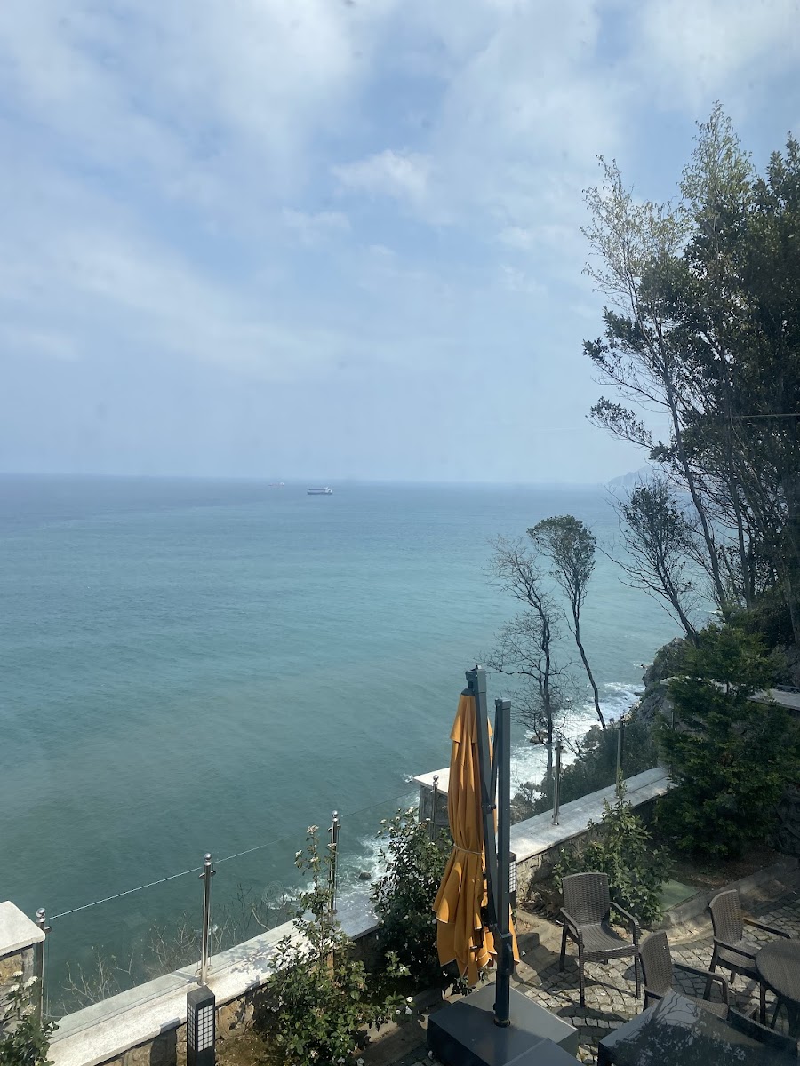 The overall ambiance is a tranquil retreat, with the serene backdrop of the sea only enhancing your dining experience. As the sun sets, the colors of the sky merge beautifully with the ocean, creating a breathtaking view that complements your meal.